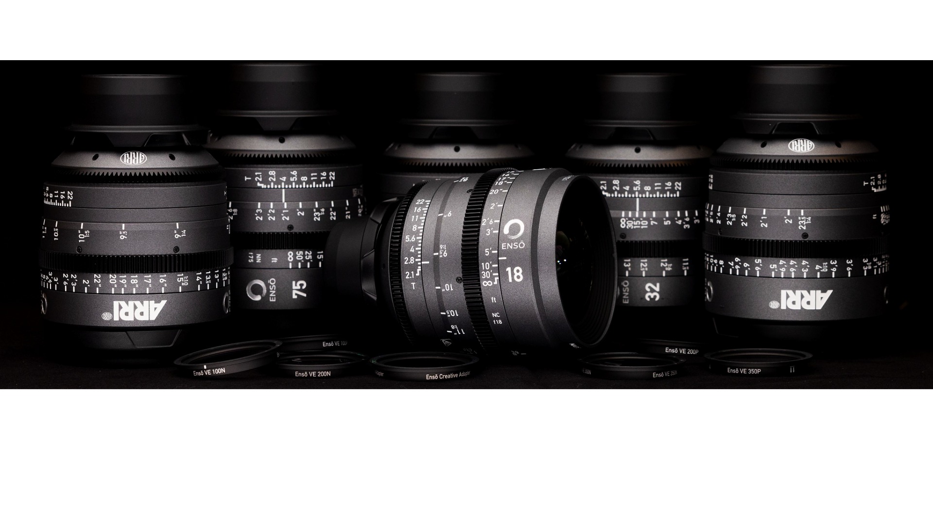 Ensōs create exceptionally smooth and balanced imagery for up to full-frame video capture. This set comprises LPL-mount 18, 24, 32, 47, 75, and 105mm primes with Cooke /i and ARRI LDS-2 metadata, plus an Ensō Vintage Elements magnetic rear filter kit for crafting multiple looks.